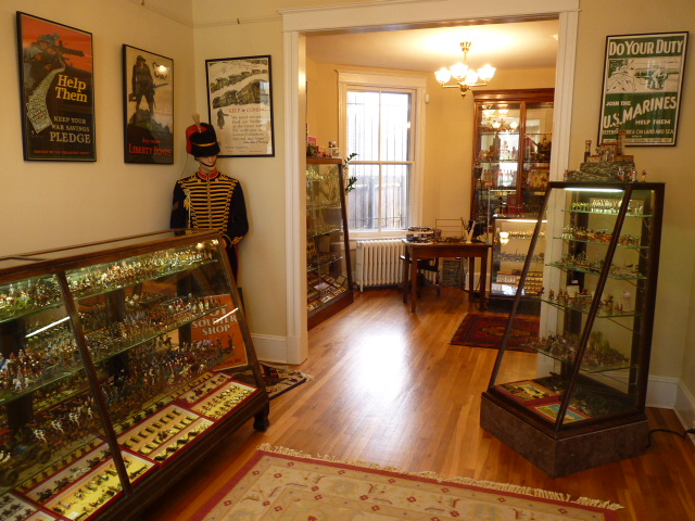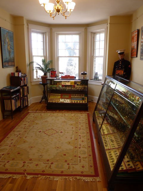 Neil Rhodes' shop occupies the first floor of a beautifully restored double parlor row house and he's there most every Saturday, holding toy soldier court and creating his own contemporary toy soldiers. Neil's painting skills and attention to detail are unsurpassed. Repairs, conversions or original commissions are eagerly and exquisitely rendered. Read more about Neil's inventory and services here |